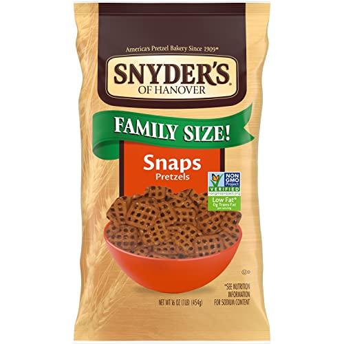 - Family size bag: the 16-ounce family size bag of Snyder's snaps pretzels are perfect for sharing with family and friends